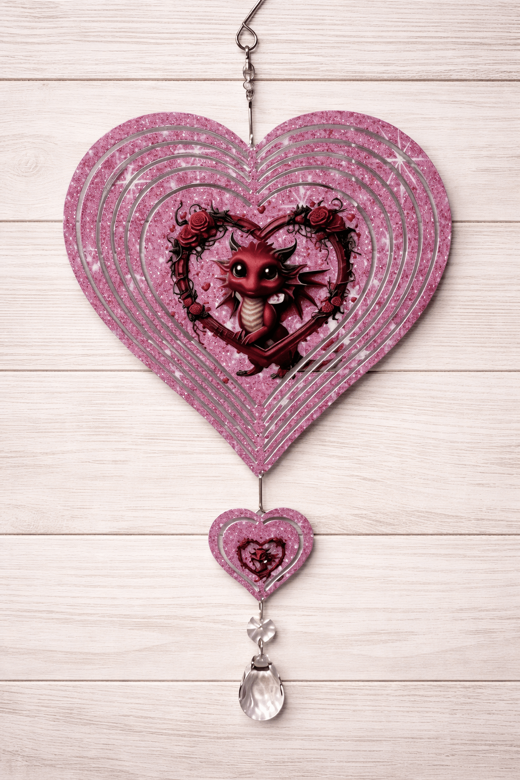 Nothing says love like this little dragon. Specialty-cut in the shape of a heart with a mini-heart beneath.