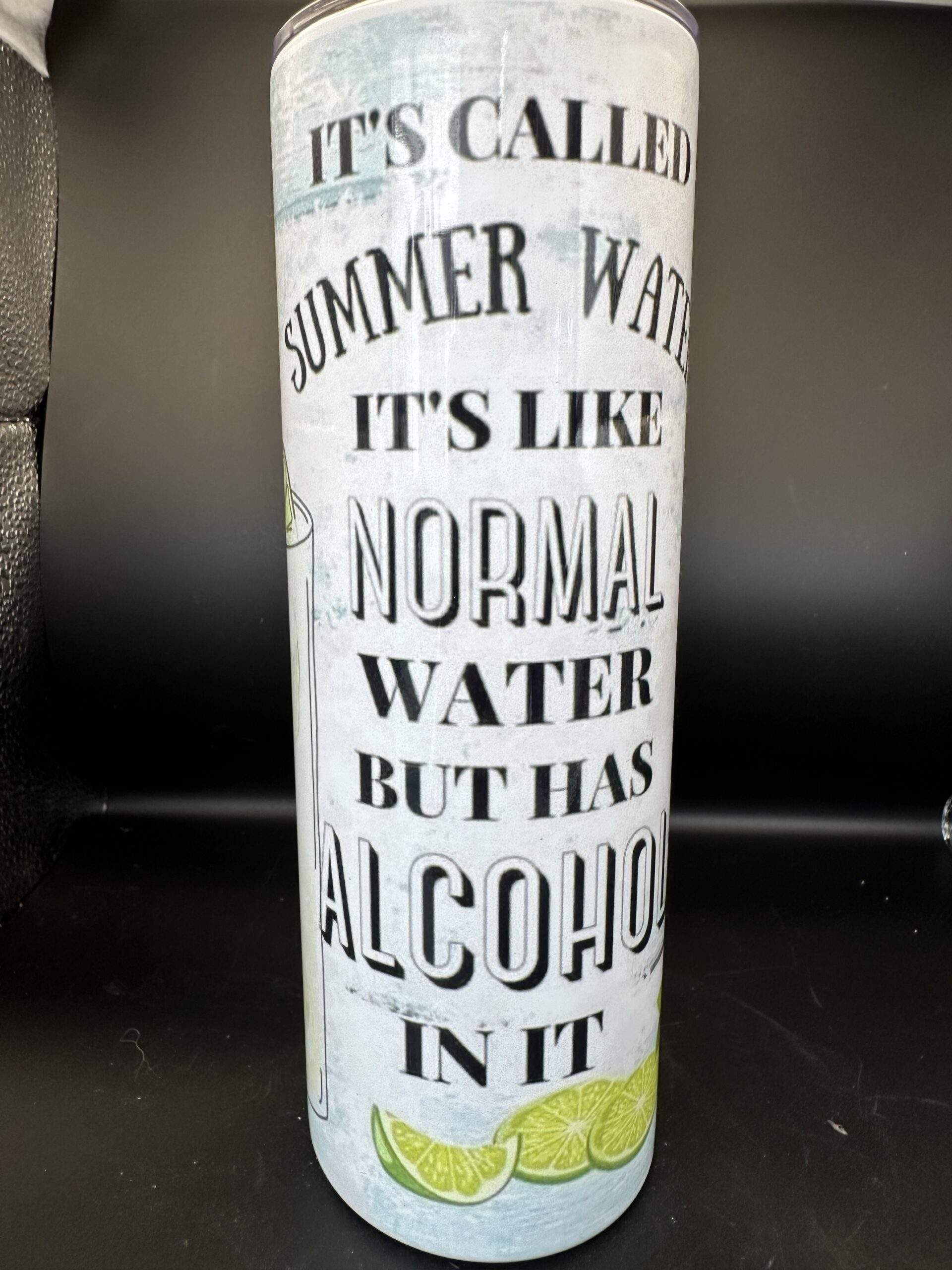 A tumbler for all of us with a little something extra in our drink today. Comes with lid and straw.